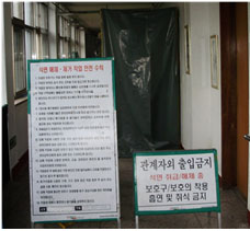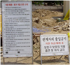 ① 석면해체·제거작업을 행하는 장소에는 다음의 표지를 출입구 또는 근로자가 보기 쉬운장소에 게시하여야 한다.