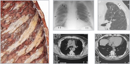 | 석면폐 | 석면섬유가 폐에 들어가 폐장의 침착에 의한 섬유화이며, 흉막의 섬유화는 무관함 |